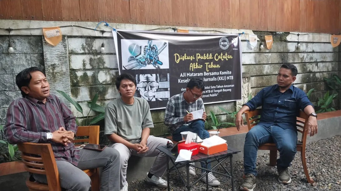 MATARAM - Aliansi Jurnalis Independen (AJI) Mataram bersama Komite Keselamatan Jurnalis (KKJ) menggelar diskusi Catatan Akhir Tahun 2025 Senin (29/12/2025), di Amore Coffee Udayana.