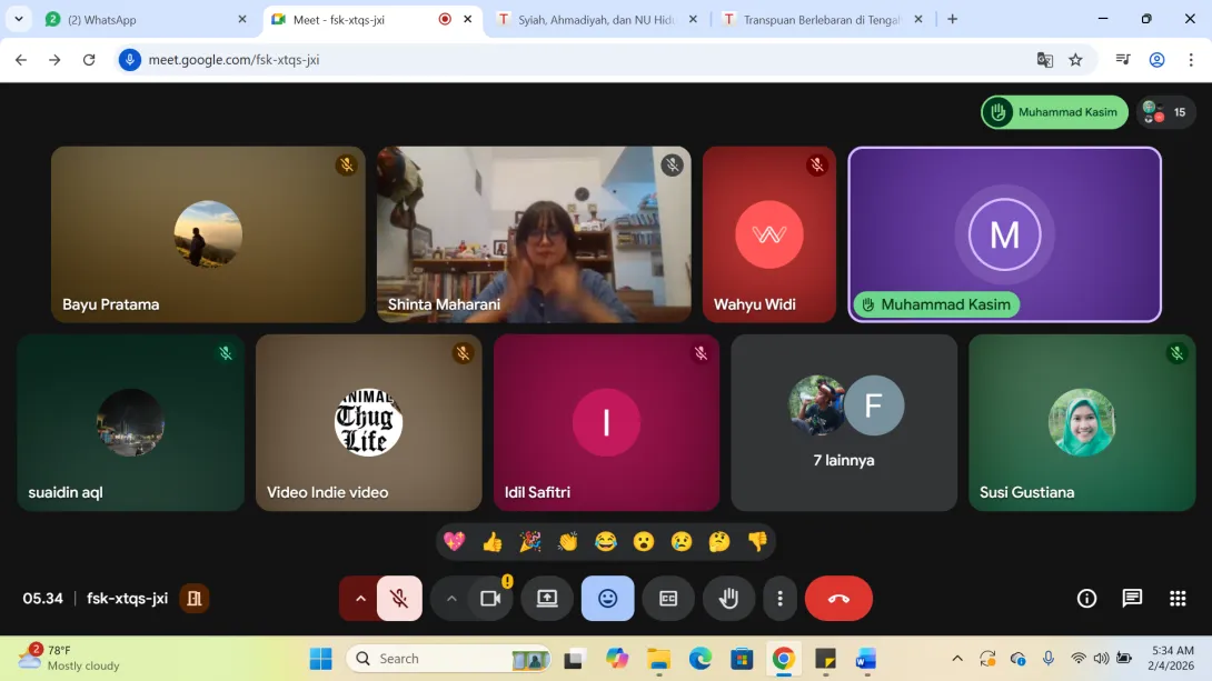 Ngaji Jurnalistik Virtual AJI Mataram bersama Shinta Maharani Jurnalis Tempo dan ketua Bidang Gender, Anak dan Kelompok Marginal, AJI Indonesia berjalan sukses Rabu (04/02/2026) pukul 20.00 sampai 22.00 WITA.